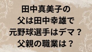 エンタメ 田中真美子の父は田中幸雄で元野球選手はデマ?父親の職業は? 今回は、田中真美子さんの父は田中幸雄さんで元野球選手はデマなのか、父親の職業についても調査していきます。 大谷翔平選手の奥様として話題の田中真美子さん。 そんな田中真美子さんのご家族について、ネット上ではいろいろな話が出回っているようです。... 2025.09.19 エンタメ