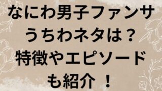 エンタメ なにわ男子ファンサうちわネタは?特徴やエピソードも紹介 ! 今回は、なにわ男子からファンサをもらう為のうちわネタと、特徴やエピソードも紹介していきます。 なにわ男子のライブで期待してしまうのが、「ファンサ」! ファンサービスの省略形であるこの言葉は、メンバーたちがステージ上からファンへ送ってくれる特... 2025.09.16 エンタメ