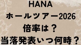 エンタメ HANAホールツアー2026倍率は?当落発表いつ何時? HANAの全国ホールツアー2026のチケット倍率と、当落発表いつ何時か調査していきます。 今年4月にデビューして大注目されているHANAが、全17都市25公演の全国ホールツアーを開催することを発表しました。 デビューからわずか数ヶ月で、音楽... 2025.09.18 エンタメ